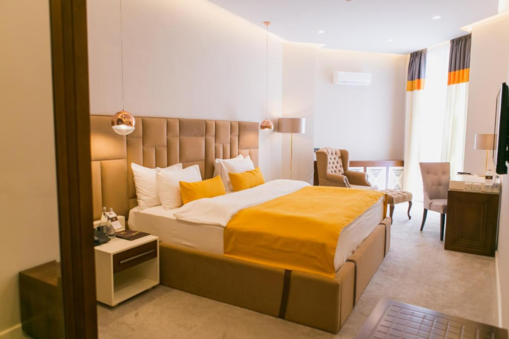 Accommodation: Designed for ultimate comfort and sophistication, the hotel’s elegantly appointed rooms offer a serene retreat with soundproofed windows, satellite TV, and air conditioning for a truly restful stay. Wake up to breathtaking views of Almaty’s skyline or the majestic Alatau Mountains, creating the perfect start to your day.