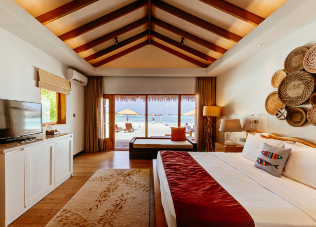 Accommodation: Cinnamon Dhonveli Maldives offers Superior Rooms with Ocean Views, combining comfort and luxury in a serene setting. These spacious rooms feature panoramic views of the turquoise ocean, where guests can wake up to the soothing sounds of the sea. Elegantly furnished with modern amenities, each room includes a king-sized bed, a private balcony, and an en-suite bathroom with a rain shower, providing the perfect retreat for a relaxing escape.